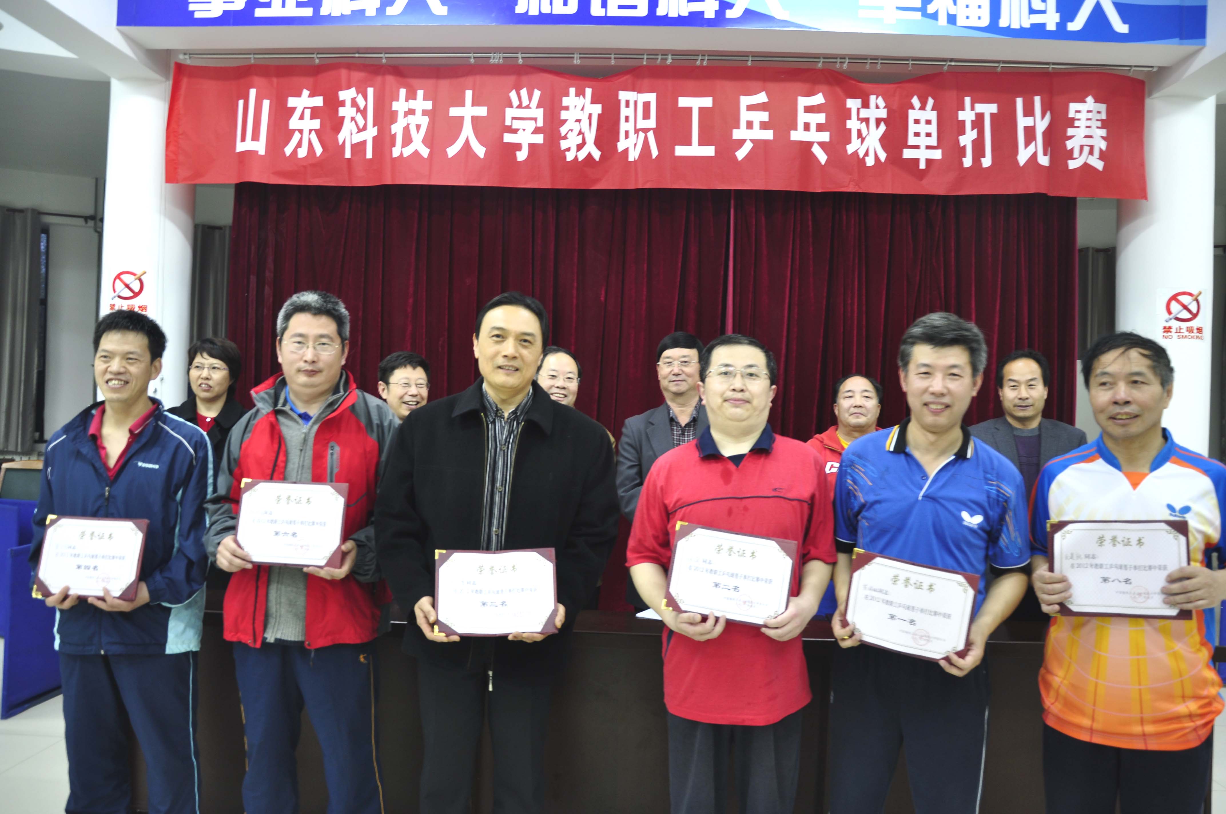 4月24日,437ccm·必赢国际2012年教职工乒乓球单打比赛圆满结束。校党委副书记李武修、校工会主席高飞出席颁奖仪式并为获奖运动员颁奖。