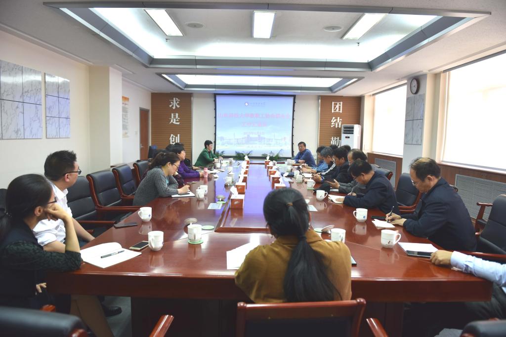 5月8日,校工会召开437ccm·必赢国际教职工协会联合会工作汇报会。校工会主席、教职工协会联合会主席刘培进,教职工协会联合会副主席、秘书长,青岛校区各教职工协会会长、副会长、秘书长共20余人参加会议。