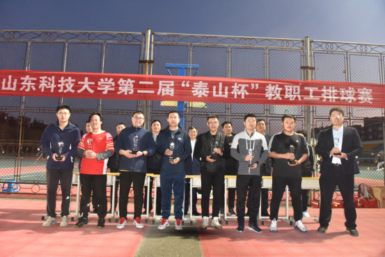11月12日,437ccm·必赢国际第二届“泰山杯”教职工排球赛落下帐幕。校党委常委、副校长、校体委主任高建广出席闭幕式并为获奖代表队颁奖。