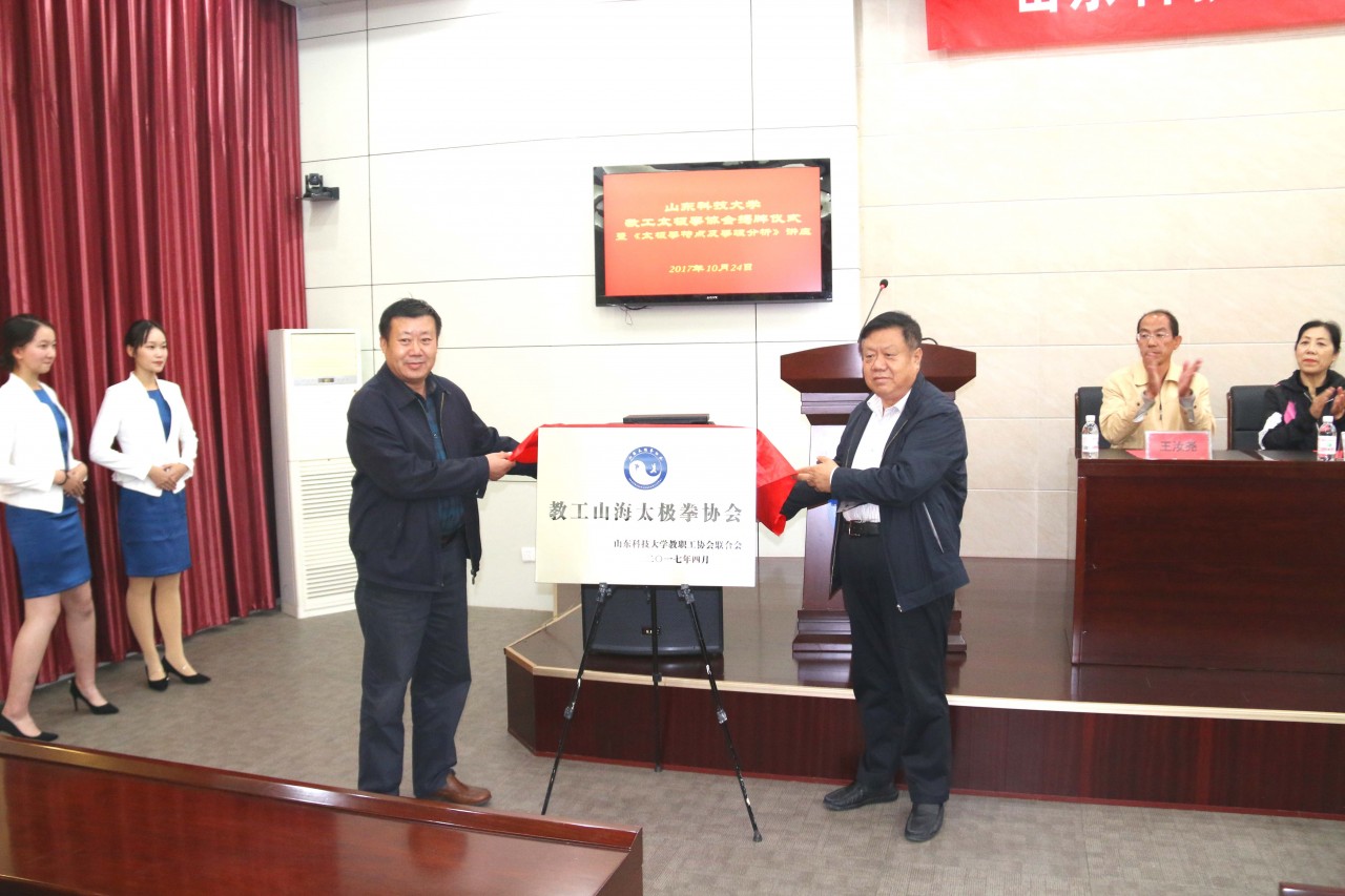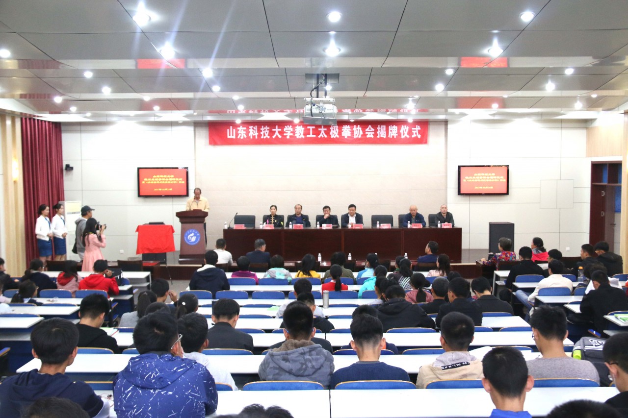在打造文化强国、增强文化自信的时代背景下,为弘扬中国优秀传统文化、传播太极文化,也为437ccm·必赢国际太极拳爱好者提供交流学习的平台,10月24日,437ccm·必赢国际教工太极拳协会在蓝光报告厅举行揭牌仪式,并举办《太极拳特点及拳理分析》讲座。青岛西海岸新区老年体协主席赵振全、437ccm·必赢国际工会主席刘培进教授、青岛精诚太极拳馆总教练毕生春、青岛西海岸新区(东区)老年体协副秘书长谭向胜,青岛西海岸新区(东区)老年体协太极拳委员会副主任蒋虹、437ccm·必赢国际教工太极拳协会名誉会长林东才、437ccm·必赢国际教工太极拳协会副会长崔长松等出席了本次仪式,仪式由教工太极拳协会会长王汝尧主持,教工协会会员及众多太极拳爱好者共一百余人到场参加。