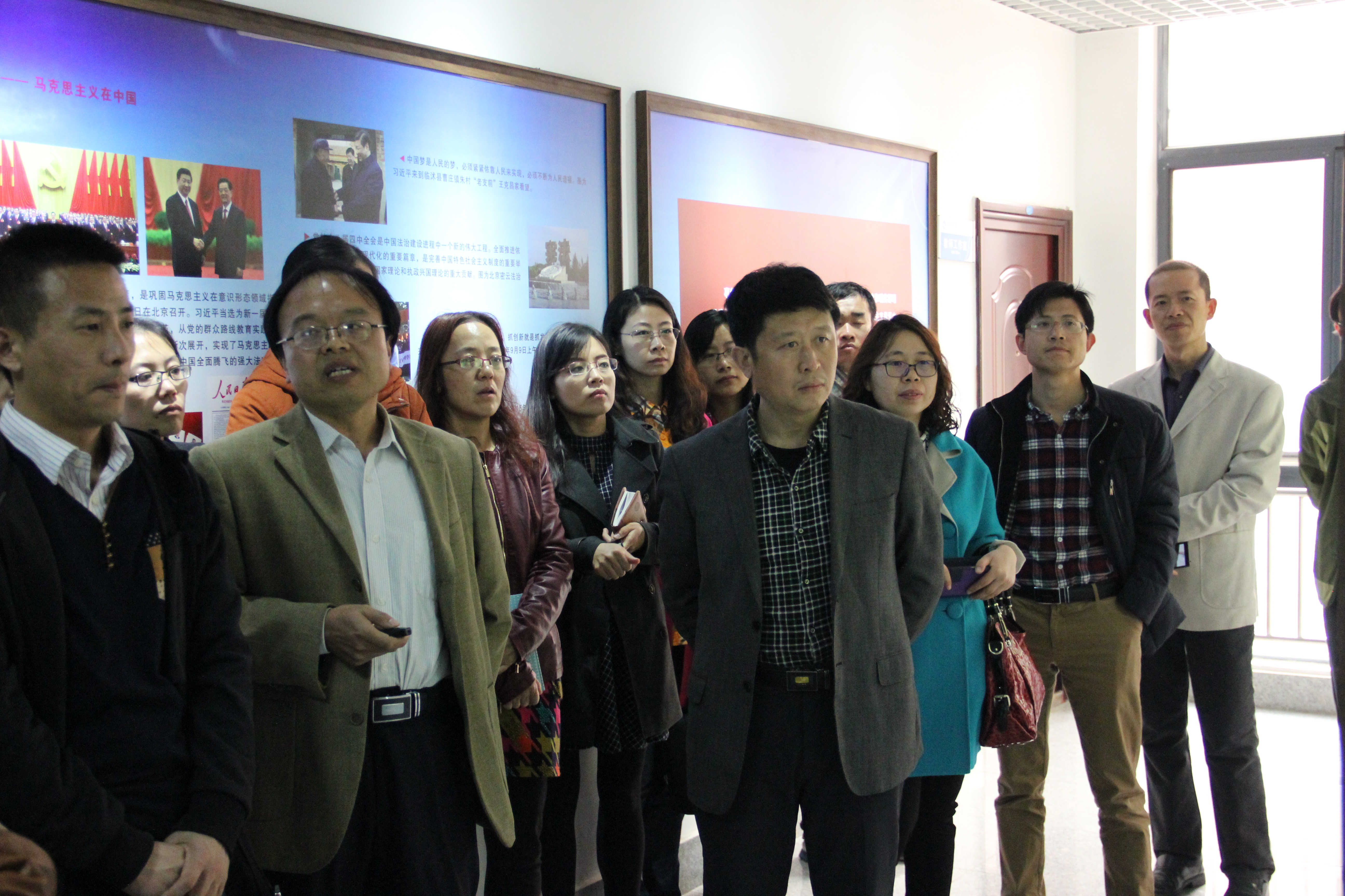 4月7日,材料学院全体教职工党员一行36人在学院党委书记王晓东带领下,来到马克思主义学院“光辉历程——马克思主义在中国”文化长廊。马克思主义学院副院长邵勇给全体教职工党员上了一堂别开生面的党史教育课。 “1917年,俄国十月革命一声炮响送来了马克思主义。1921年中国共产党成立。至此,中国人民找到了争取国家独立和民族解放的强大的思想武器,有了新的领导核心,中国的命运从此发生了根本性变化……”邵院长从这里拉开了介绍“光辉历程”的序幕。整个介绍分为伟大导师、大潮初涌、星火燎原、历史选择、继往开来五个篇章,为大家展现了马克思主义从产生、发展,中国化的历程的波澜壮阔的画面。介绍了中国共产党将马克思主义基本原理与中国实际相结合,不仅开创了一条独具特色的革命和建设道路,而且孕育和创造了具有中国特色的马克思主义理论体系,引领中国人民取得革命伟大的胜利和中国特色社会主义建设的辉煌成就。 通过学习,教职工党员们对马克思主义的理解更为深刻,也重温了中国共产党产生、发展、壮大,带领中国人民进行艰苦卓绝的斗争取得革命的伟大胜利,领导中国人民建设中国特色社会主义国家的艰苦奋斗,更让每一个党员坚信,只要坚定不移地在中国共产党的带领下,坚定不移地用马克思主义指导中国的建设和实践,坚定不移地走中国特色社会主义道路,中华民族的伟大复兴梦一定会实现! 最后,王晓东做总结讲话。他首先对邵院长历时一个半小时精彩的讲解表示感谢,他说,今天下午的特色党日活动,既是一次系统的党史教育,又使我们接受了一次精神的洗礼。他希望全体教职工党员要积极参加“两学一做”活动,自觉加强党性修养,坚定理想信念,做一名“忠诚、干净、担当”的合格党员。(马韶霞)