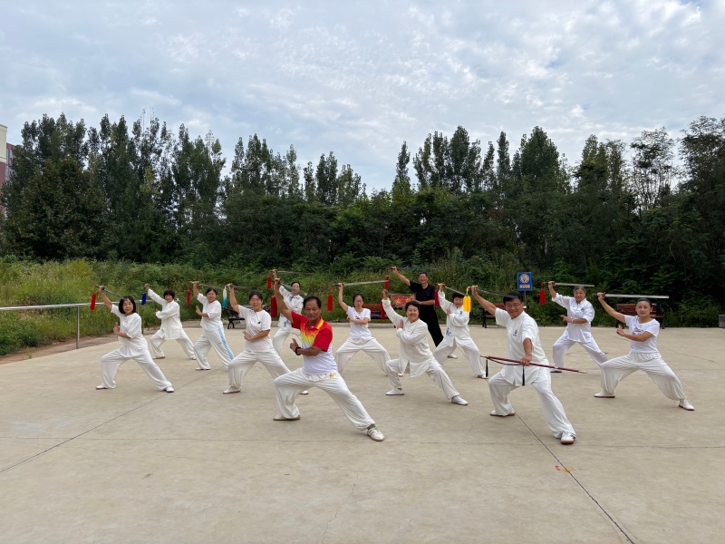 协会暑期特邀杨前明(师从陈式太极拳及武当太极传人)、姜乃民(山东省太极拳比赛二等奖获得者)两位老师,开展为期六周的武当太极63剑公益教学。教学从基础剑法、步法切入,学员克服酷暑坚持练习,最终能流畅完成全套动作,尽显太极剑韵味。